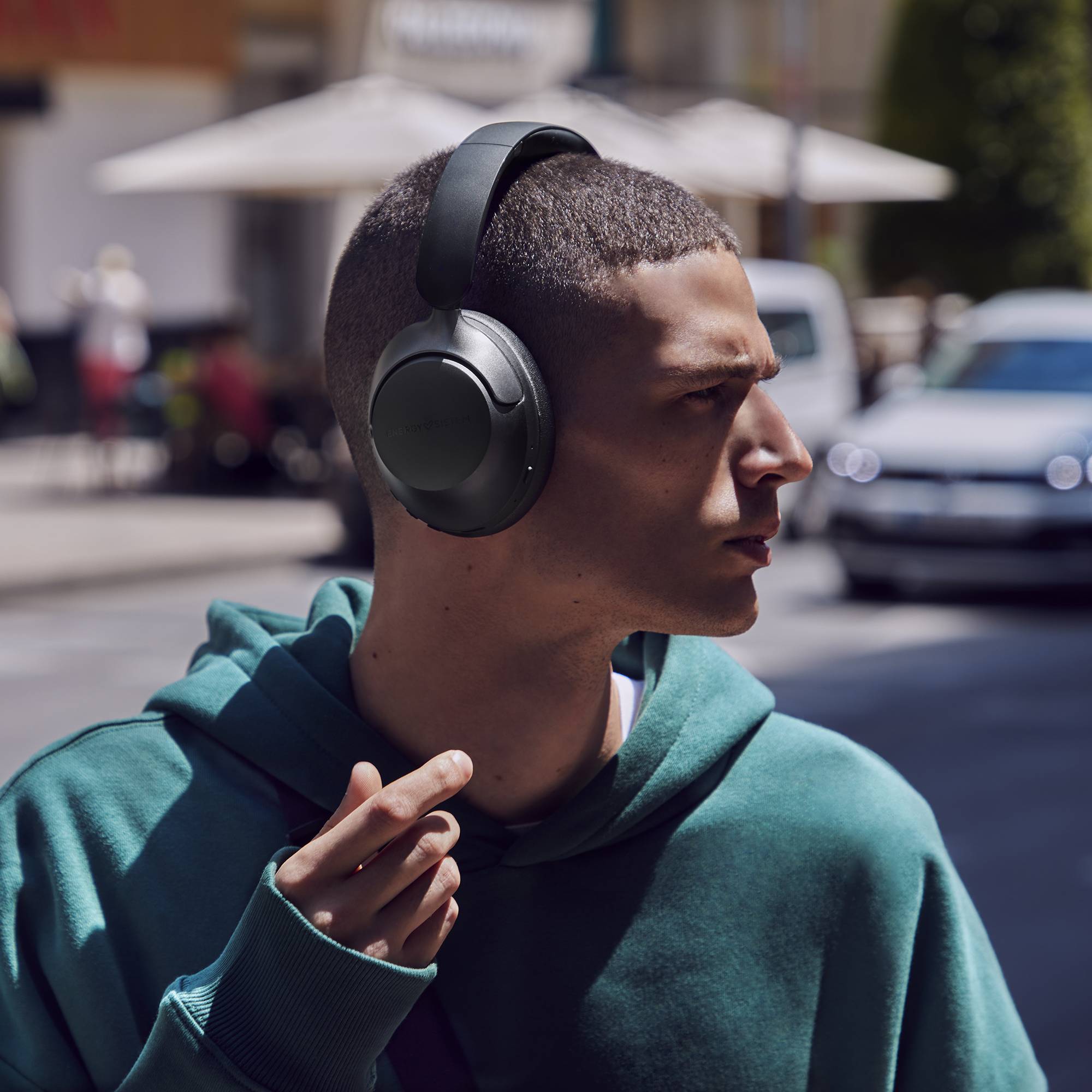 Auriculares Bluetooth fabricados con plástico reciclado certificado (GRS) y con tecnología Active Noise Cancelling que reduce el ruido exterior para disfrutar de un sonido nítido. Hasta 70 horas de autonomía y carga rápida. Almohadillas con acabado proteico y espuma viscoelástica para una comodidad y un aislamiento totales.