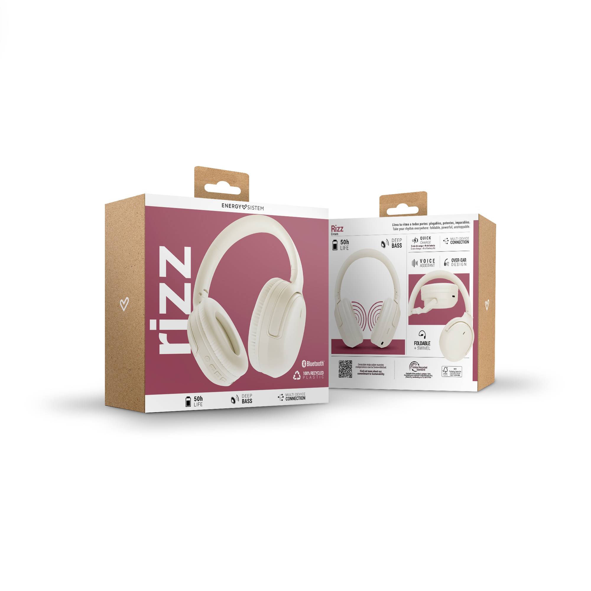 Auriculares Bluetooth® 5.4 plegables con plástico reciclado, diseño circumaural y diadema ajustable para disfrutar 50 horas cómodamente de tu música . Sonido contundente gracias a sus drivers de 40 mm y Deep Bass. Conéctate a varios dispositivos al mismo tiempo para no perderte nada. Responde tus llamadas y controla toda tu música.