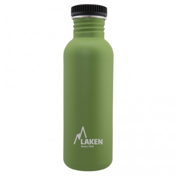 BOT. BASIC STEEL PLAIN 0,75 LVERDE- TAPON NEGRO ROSCA ACERO –